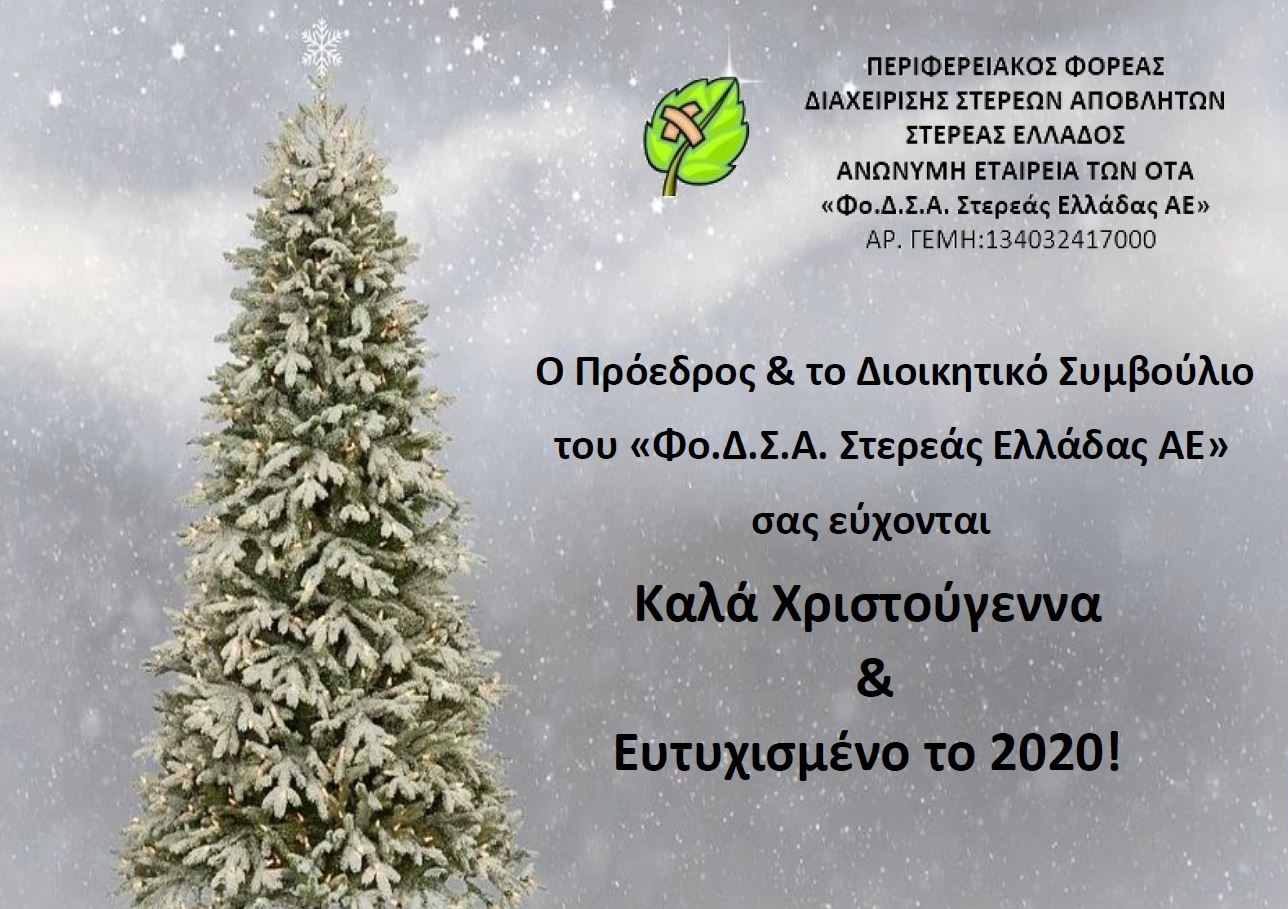 Παρακαλείσθε να προσέλθετε στην τακτική συνεδρίαση (1η/2020) του Διοικητικού Συμβουλίου του Περιφερειακού Φορέα Διαχείρισης Στερεών Αποβλήτων Στερεάς Ελλάδας – Ανώνυμη Εταιρεία των Ο.Τ.Α «Φο.Δ.Σ.Α. Στερεάς Ελλάδας ΑΕ» που θα γίνει την Δευτέρα 13 Ιανουαρίου 2020 και ώρα 12.30, στην πόλη της Θήβας και συγκεκριμένα στα γραφεία της έδρας του φορέα, επί των οδών Π Δράκου…